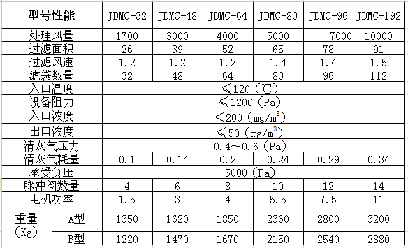 JDMC袋式除塵器 單機(jī)脈沖袋式除塵器采用逐行脈沖噴吹的清灰方式,其結(jié)構(gòu)由過濾室、濾袋、凈氣室、灰斗、卸灰裝置、脈沖噴吹清灰裝置、電控系統(tǒng)組成具有清灰效果好、凈化效率高、濾布壽命長、維修工作量小、運(yùn)行安全可靠等優(yōu)點(diǎn)。廣泛用于冶金、建材、化工、機(jī)械、礦山等各種工礦企業(yè)非纖維工業(yè)粉塵的除塵凈化與物料的回收。 主要特點(diǎn)是: ◆該設(shè)備有體積小,處理風(fēng)量大,結(jié)構(gòu)緊湊,使用方便、安全可靠等優(yōu)點(diǎn)。 ◆用滌淪氈等各種濾料,正常使用溫度<120℃(溫度根據(jù)客戶要求制作)入口含塵濃度<200glNM。出口排放濃度<50mglNM3。 ◆適用于運(yùn)輸機(jī)、提升機(jī)、庫頂、庫底、包裝機(jī)、熟料破碎等處除塵。 ◆采用高壓大流量脈沖閥逐條濾袋噴吹清灰的技術(shù),其它單機(jī)相比,具有清灰動能大,清灰效率高的特點(diǎn)。