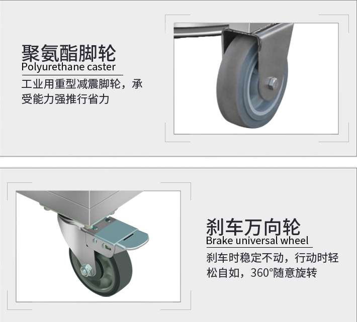 300毫米的聚氨酯腳輪,為設(shè)備的定輪??蛇m應(yīng)老舊不平路面,和方便通過鐵軌。動輪采用工業(yè)級腳輪。頂級聚氨酯(PU),支架采用6mm酸洗板增加加強(qiáng)筋,10寸動輪單個可以承載100kg,輪面采用紋路設(shè)計,增強(qiáng)防滑性能。,