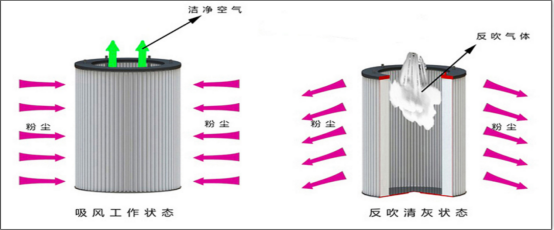 ⑤水泥廠用大功率吸塵器采用脈沖反吹式清灰: 該設備內(nèi)置氣包、脈沖閥、高壓空氣起源等噴吹裝置,全自動數(shù)控裝置,可利用高壓空氣在濾芯工作一段時間后,及時將濾芯表面的粉塵清理掉。以保證設備連續(xù)運行吸力不會減小。