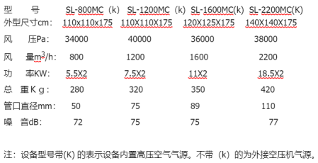 注:設備型號帶(K) 的表示設備內(nèi)置高壓空氣氣源。不帶(k)的為外接空壓機氣源。