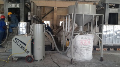采用電解鋁廠用工業(yè)吸塵器,和連續(xù)卸料裝置??蛇h距離連續(xù)不斷的對鋼砂進行回收,電解鋁廠用工業(yè)吸塵器最大負壓達60KPa,可輕松吸起6Kg鐵棒。連續(xù)卸料器可實現(xiàn)一邊吸料一邊放料,便于系統(tǒng)連續(xù)不斷的工作