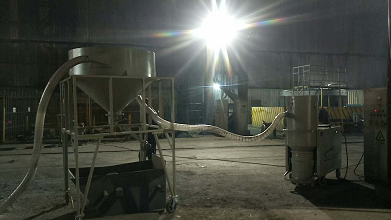 采用電解鋁廠用工業(yè)吸塵器,和連續(xù)卸料裝置??蛇h距離連續(xù)不斷的對鋼砂進行回收,電解鋁廠用工業(yè)吸塵器最大負壓達60KPa,可輕松吸起6Kg鐵棒。連續(xù)卸料器可實現(xiàn)一邊吸料一邊放料,便于系統(tǒng)連續(xù)不斷的工作